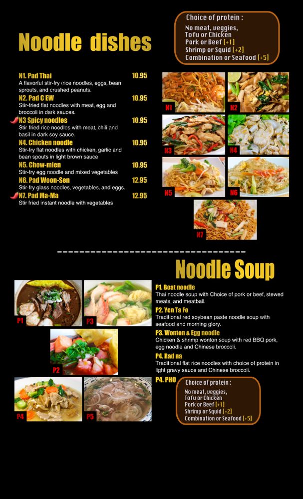 Thai noodle soup with choice of beef or pork, stewed meat and meat ball.