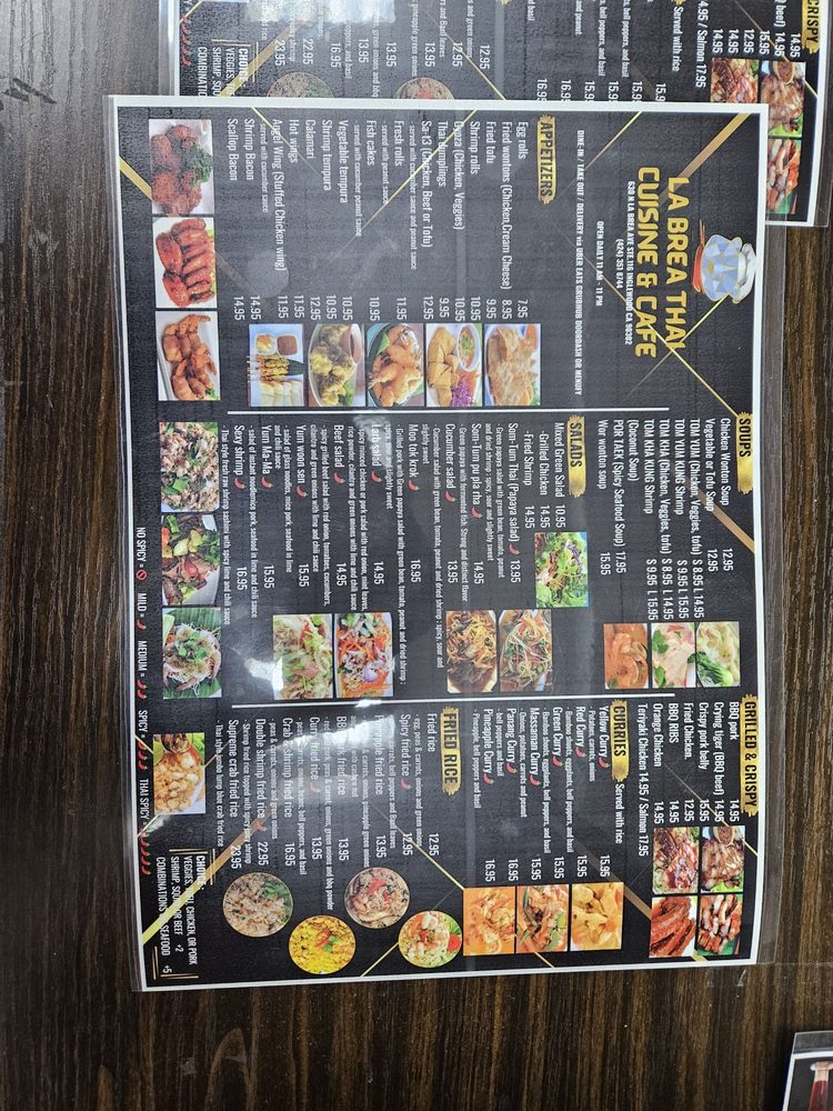 Welcome to LA BREA THAI CUISINE & CAFE, a delightful culinary haven located at 630 N La Brea Ave, Inglewood, CA. Renowned for its authentic Thai offerings, this café specializes in an array of vibrant dishes, including fresh salads, aromatic soups, and rich curries. The menu showcases enticing options such as the BBQ Pork and Crying Tiger BBQ Beef, alongside an array of flavorful curries like the Yellow Curry and Massamun Curry.